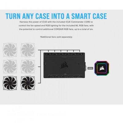 Delivers powerful, low-noise cooling for your CPU, with a 240mm radiator, two CORSAIR ML120 RGB PWM fans, and an ultra-bright CAPELLIX RGB pump head.