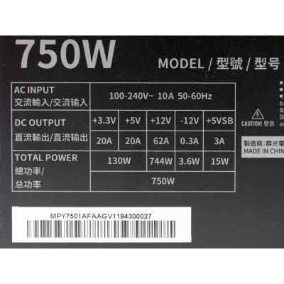 Connectors: ATX, PCIe, EPS, SATA, Molex