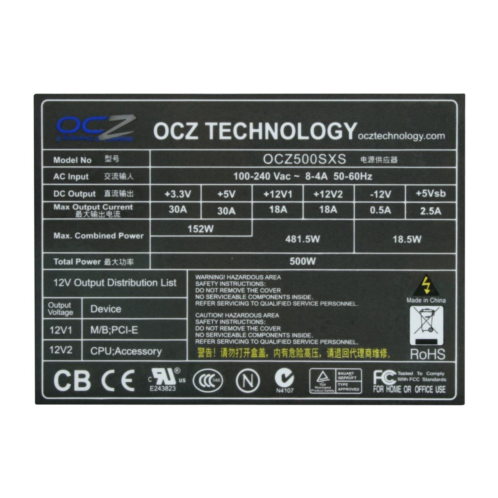 Output +3.3V@30A, +5V@30A, +12V1@18A, +12V2@18A, -12V@0.5A, +5VSB@2.5A